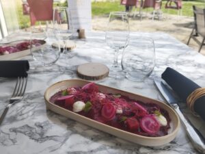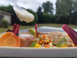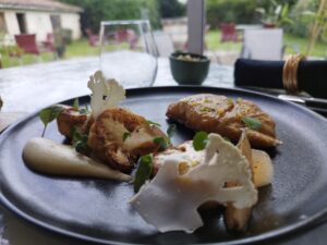 NOS PRÉPARATIONS Asperges verte des landes Déclinaison de betteraves, fromage et truite Oignon sous toutes ses formes, volaille en deux façons Oignon sous toutes ses formes, volaille en deux façons Raviole d’épinards, jaune d’oeuf, émulsion pistache Lieu noir, déclinaison de choux fleur et poires, vierges aux agrumes Raviole, champignons, bouillon asiatique Raviole, champignons, bouillon asiatique Petits pois , carottes, cabillaud Raviole, champignons, bouillon asiatique Nos différents beurres maison Déclinaison de carottes, jus au foin, lieu noir Raviole de champignons, bouillon crémé Déclinaison d’aubergines, magret, jus de viande Ceviche de merlu, déclinaison de carottes, gingembre confit Salade poulpe, pastèque, radis Tomates colorées, siphon mozzarelle, voile d’eau de tomates, huile basilic Le demi-pêche , glace bière, déclinaison de pêches Sucrine braisée, oeuf mollet, vinaigrette au jus de viande Lapin en deux façons, carottes sous toutes ses formes, sabayon estragon Fruits rouge, mousse fromage blanc, glace fruits rouge Fruits rouge, mousse fromage blanc, glace fruits rouge